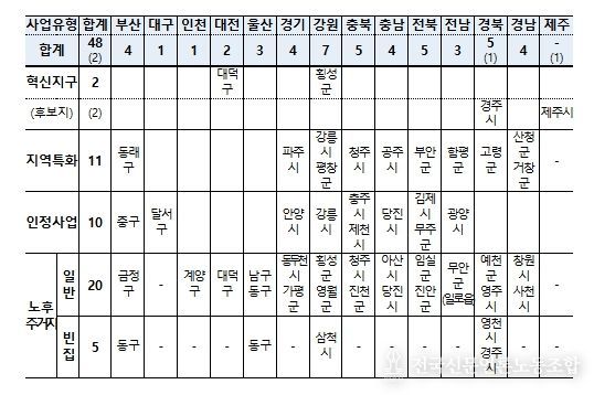한편, 신규 사업지 48곳 중 43곳(89.6%)이 비수도권, 22곳(45.8%)은 인구 10만명이하 소도시(시·군·구 인구 기준)로 나타나 국가 균형성장에도 기여할 것으로 전망된다.