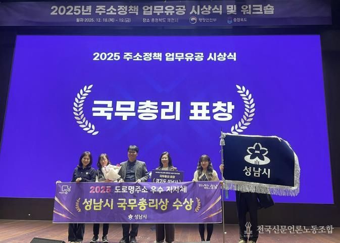 전국신문언론노동조합 기자 | 성남시는 행정안전부가 주관한 2025년 주소정책 업무 평가에서 도로명주소 활성화 분야 우수 지자체로 선정돼 국무총리 기관표창을 수상했다고 19일 밝혔다.