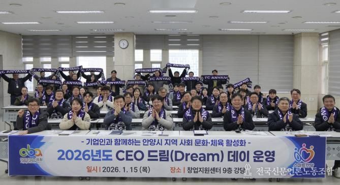 전국신문언론노동조합 기자 | 안양산업진흥원은 15일 오후 3시30분 안양창업지원센터 강당에서 관내 기업인 150여 명을 대상으로 지역사회 문화·체육 활성화를 위한 ‘2026 CEO 드림(Dream) 데이’를 열었다.