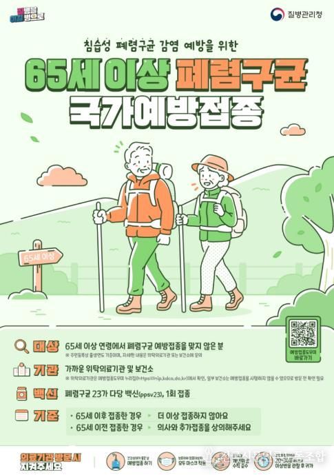 대상은 1961년 12월 31일 이전 출생자 중 폐렴구균 23가 다당 백신(PPSV23)을 맞지 않은 시민이다. 폐렴구균은 폐렴·뇌수막염 등 침습성 감염질환의 주요 원인으로, 고령층 발생 시 치명률이 60~80%까지 높아 접종이 중요하다.