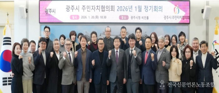 전국신문언론노동조합 기자 | 광주시는 지난 20일 시청 비전홀에서 읍면동 주민자치위원장, 회장, 사무국장 등이 참석한 가운데 ‘광주시 주민자치협의회 2026년 1월 정기회의’를 열고 제10대 광주시 주민자치협의회를 이끌 협의회장과 임원을 선출했다.