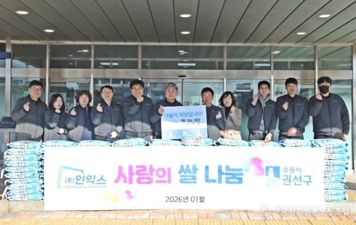 전국신문언론노동조합 기자 | 수원시 권선구는 21일 ㈜인익스에서 설 명절을 맞이하여 후원한 백미(10kg) 100포에 대한 전달식을 진행했다.