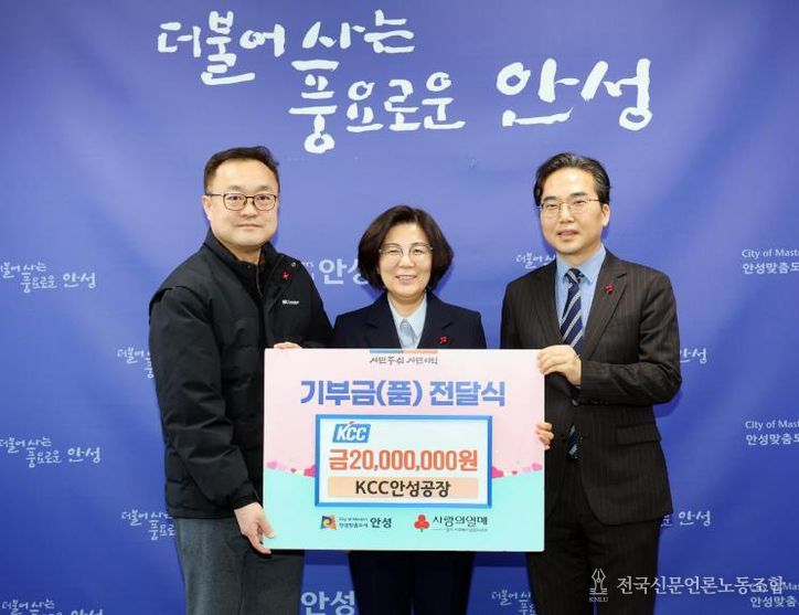 전국신문언론노동조합 기자 | 안성시는 1월 19일 KCC안성공장으로부터 기부금 2,000만 원을 전달받았다고 밝혔다.