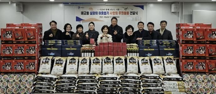 전국신문언론노동조합 김성길 기자 | 지난 2일 수원시 팔달구 매교동은 설 명절을 맞이하여 관내 소외되는 어려운 이웃이 없도록 설명절 이웃나눔 후원물품 전달식을 가졌다.