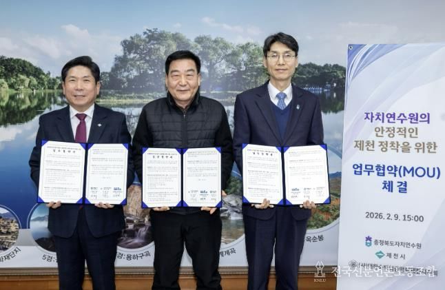 전국신문언론노동조합 김성길 기자 | 지난 9일 제천시와 충청북도자치연수원, (사)대한숙박업중앙회제천시지회는 제천시로 이전한 충청북도자치연수원 교육생의 숙박 편의 지원을 위한 업무협약을 체결했다.