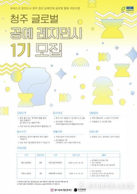 전국신문언론노동조합 김성길 기자 | 유네스코 공예 창의도시 청주가 글로벌 레지던시 사업의 닻을 올린다.