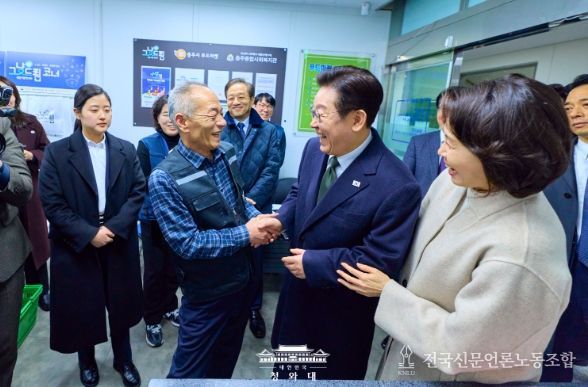 전국신문언론노동조합 강찬희 기자 | 이재명 대통령과 김혜경 여사는 11일 오후 충주시건강복지타운 안에 위치한 푸드마켓 내 그냥드림 코너를 방문해 운영 현황을 점검하고 종사자들을 격려했다고 안귀령 청와대 부대변인이 서면 브리핑을 통해 전했다.
