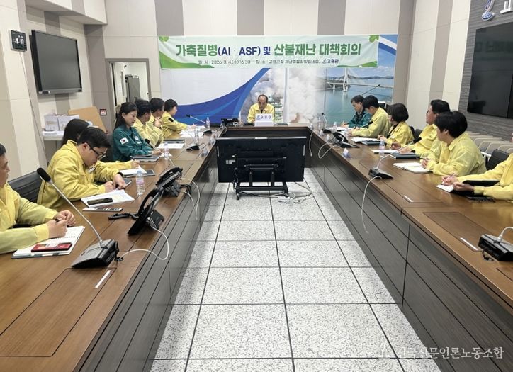 전국신문언론노동조합 강찬희 기자 | 고흥군은 지난 4일 군청 재난종합상황실에서 ‘가축 질병(AI·ASF) 및 산불재난 대책회의’를 개최했다고 밝혔다.