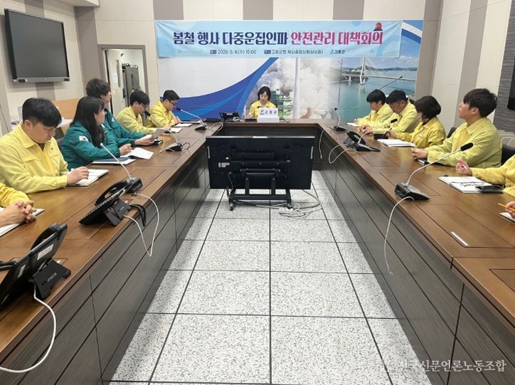 전국신문언론노동조합 강찬희 기자 | 고흥군은 지난 4일 군청 재난종합상황실에서 ‘봄철 행사 다중운집 인파 안전관리 대책회의’를 개최하고, 4월 녹동항 드론쇼를 비롯한 대규모 행사의 안전사고 예방과 대응체계 강화 방안을 논의했다.