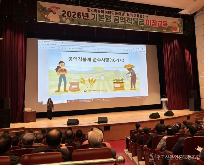 전국신문언론노동조합 강찬희 기자 | 고흥군과 국립농산물품질관리원 고흥사무소는 기본형 공익직불제의 원활한 추진과 농업인 신청 누락 방지를 위해 10일 고흥문화회관 김연수실에서 각 읍·면 이장을 대상으로 ‘기본형 공익직불제 이장교육’을 실시했다.
