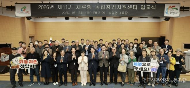 전국신문언론노동조합 김성길 기자 | 제천시는 지난 24일 제천시농업기술센터 농업인교육장에서 도시민 25세대를 대상으로 체류형 농업창업지원센터 입교식을 열고 본격적인 운영에 들어갔다.