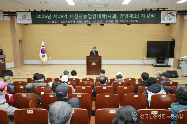 전국신문언론노동조합 김성길 기자 | 제천시는 지난 25일 교육생 79명이 참석한 가운데 농업기술센터 농업인교육장에서 ‘제19기 제천시농업인대학 개강식’을 개최했다.