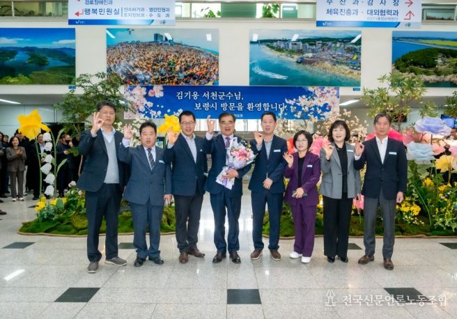 이날 김기웅 군수는 보령시청에 도착해 직원들의 환영 속에 공식 일정을 시작했다.