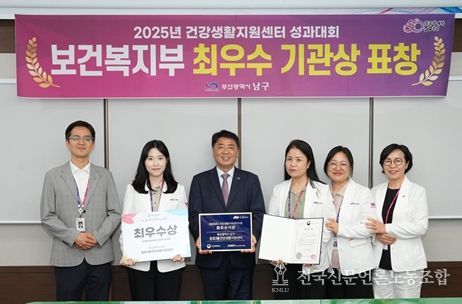 전국신문언론노동조합 이의용 기자 | 부산 남구 용호3동 건강생활지원센터가 보건복지부 주관 2025년 건강생활지원센터 성과대회에서 최우수기관으로 선정됐다.