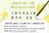 예산군청소년수련관, 2026년 2분기 청소년 프로그램 참가자 모집