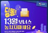 국세청, 딩동!! 연말정산, 13월 보너스 놓치지마세요!