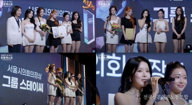 스테이씨(수민, 시은, 아이사, 세은, 윤, 재이)는 지난 28일 서울 소공동 롯데호텔 크리스탈 볼룸홀에서 열린 '제7회 뉴시스 한류엑스포(2025 K-엑스포)' 시상식에서 서울시의회의장상을 수상했다.
