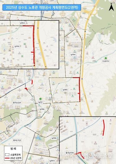 시는 지난해 상수도관망기술진단 결과에 따라 1권역(신부동 524번지~ 원성동 610번지)과 2권역(원성동 613번지~ 구성동 490번지) 내에 매설돼 있는 30년이 초과한 노후관을 대상으로 개량공사를 추진한다.