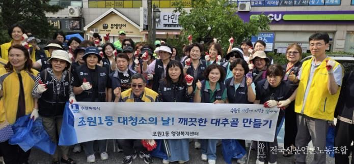 전국신문언론노동조합 기자 | 수원시 장안구 조원1동은 추석과 APEC을 맞아 추진 중인 국민 참여 운동인 「대한민국 새단장」 캠페인의 일환으로 추석맞이 대청소를 실시했다.