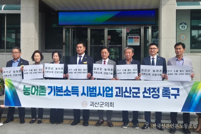 전국신문언론노동조합 강찬희 기자 | 괴산군의회는 2일 간담회를 열고 괴산군이 정부의 농어촌 기본소득 시범 사업대상지로 선정될 수 있도록 강력히 촉구했다.