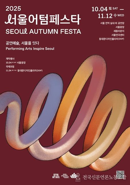 전국신문언론노동조합 강찬희 기자 | 서울시와 서울문화재단은 오는 10월 4일 오후 7시, 서울광장에서 '2025 서울어텀페스타 개막식'을 개최한다. 올해 개막식은 ‘공연예술로 가득한 서울의 가을’을 주제로, 서울이 세계적인 공연예술 중심도시로 도약하겠다는 비전을 선포하는 자리다.