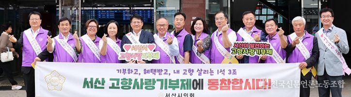 전국신문언론노동조합 강찬희 기자 | 서산시의회는 2일 추석 명절을 맞이하여 서산 공용터미널 일원에서 고향사랑기부제 홍보캠페인을 실시했다.