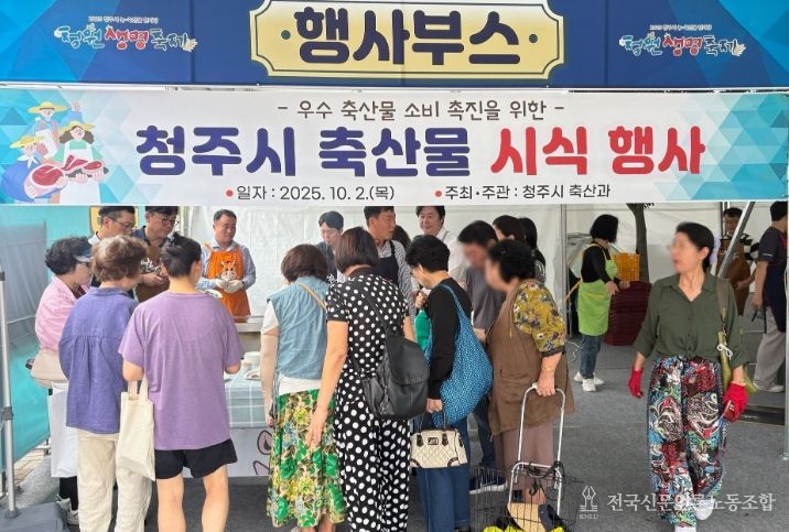 전국신문언론노동조합 강찬희 기자 | 청주시는 2일 청원생명축제 축산물판매장에서 축산물 소비촉진을 위한 시식 행사를 열고 축제 관람객을 대상으로 지역 생산 축산물의 우수성을 홍보했다.