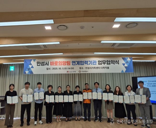 전국신문언론노동조합 기자 | 안성시는 지난 10월 1일 안성시가족센터 다목적홀에서 가정폭력․성폭력 등 112신고 피해자에 대한 ‘원스톱 통합지원’을 위하여 업무협약(MOU)을 체결했다.