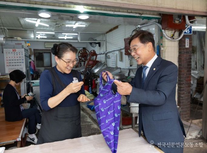 전국신문언론노동조합 강찬희 기자 | 김병전 부천시의회 의장은 2일 추석 명절을 앞두고 전통시장과 상점가를 방문해 소상공인을 격려했다.