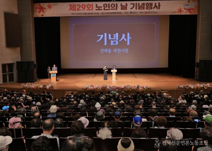 전국신문언론노동조합 기자 | 과천시는 2일 시민회관 대극장에서 ‘제29회 노인의 날 기념식’을 열었다. 시가 주최하고 과천시노인복지관이 주관한 가운데 열린 이날 행사에는 지역 어르신 1천1백여 명이 참석했다.