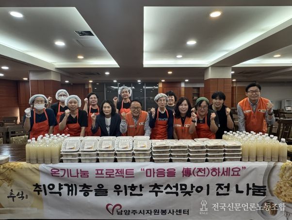 전국신문언론노동조합 기자 | 남양주시자원봉사센터는 추석맞이 집중 주간을 맞이하여 9월 25일부터 오는 10월 3일까지 약 1,300명의 관내 취약계층을 대상으로 ‘추석맞이 전 나눔 활동’을 펼쳤다.