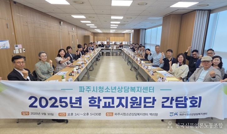 전국신문언론노동조합 기자 | (재)파주시청소년재단 파주시청소년상담복지센터(센터장 장문희)는 9월 30일 오후 3시, 센터 내 백리향에서 관내 초·중·고 33개교 교장을 대상으로 '2025년 청소년안전망 학교지원단 간담회'를 개최했다.