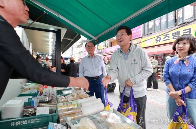 전국신문언론노동조합 기자 | 이상일 용인특례시장은 2일 모수 추석 명절을 앞두고 지역 전통시장에서 장을 보며 상인과 시민들에게 명절 잘 보내시라는 인사를 하고, 어르신들이 기거하는 사회복지시설을 찾아 인사했다.