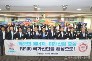해남군이 지역 최대 화두인 RE100국가산단 특별법 제정과 국가산단 지정에 속도를 높이고 있다.