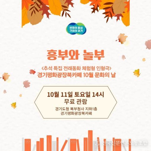 전국신문언론노동조합 강찬희 기자 | 경기도가 오는 10월 11일 경기평화광장 북카페 원형무대에서 추석 연휴를 맞아 전래동화 인형극 공연 ‘흥부와 놀부’를 공연한다. 이번 행사는 ‘10월 문화의 날’ 프로그램으로, 도민에게 명절의 의미를 되새기고 가족과 함께하는 특별한 시간을 제공하기 위해 기획됐다.