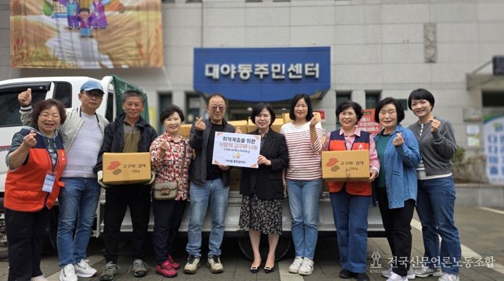 전국신문언론노동조합 기자 | 시흥시 대야동 통장협의회는 지난 10월 10일 대야동 주민센터에서 지역 취약계층을 위한 고구마 40상자(500kg) 전달식을 열었다. 이번 나눔은 지역 사회 돌봄의 공백을 줄이고, 따뜻한 명절 분위기를 어려운 이웃들과 나누기 위해 마련됐다.