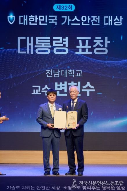 전국신문언론노동조합 김성길 기자 | 전남대학교 화공생명공학과 변헌수 교수가 산업통상자원부에서 주최하고 한국가스안전공사(사장 박경국)가 주관한 ‘제32회 대한민국 가스안전 대상’에서 대통령 표창의 영예를 안았다.