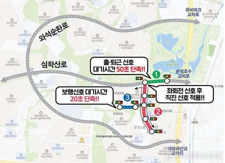 양성원 첨단도시정보과장은 “이번 신호체계 개선으로 아파트 단지 진출입이 한결 원활해지고 시민들의 교통 불편이 크게 해소될 것으로 기대한다”라며 “앞으로도 지속적으로 신호체계를 개선해 보다 안전하고 효율적인 교통 환경 조성에 힘쓰겠다”라고 밝혔다.