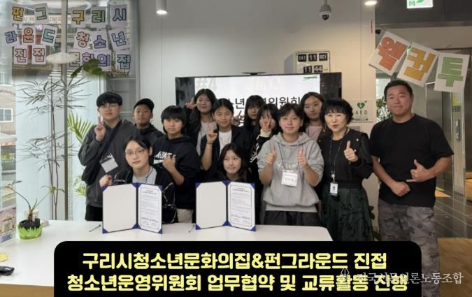 전국신문언론노동조합 기자 | 구리시청소년재단은 지난 10월 11일, 구리시청소년문화의집과 남양주시 펀그라운드(청소년 전용 복합문화공간) 진접 청소년운영위원회가 상호 방문을 통해 진행한 청소년 교류 활동을 성황리에 마무리했다고 밝혔다.