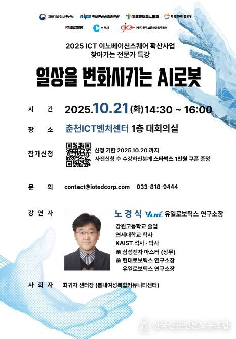 전국신문언론노동조합 강찬희 기자 | 과학기술정보통신부와 정보통신산업진흥원이 주최하고 강원정보문화산업진흥원이 운영하는 '2025년 ICT 이노베이션스퀘어 확산사업'의 일환으로 추진 중인 ‘찾아가는 전문가 특강’이 지역 현장의 디지털 전환을 견인하고 있다.