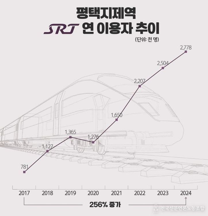 전국신문언론노동조합 기자 | 평택시는 SRT 개통 이후 평택지제역의 이용자 증가율이 전체 SRT 역사 가운데 가장 높게 나타났다고 밝혔다.