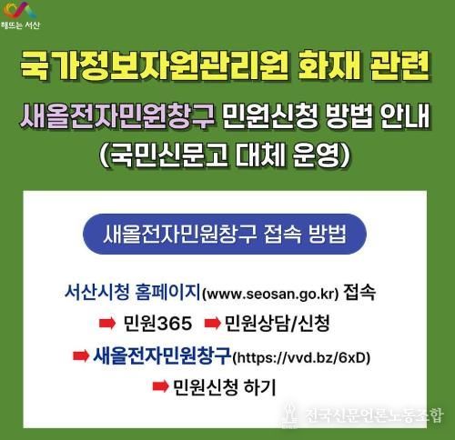 전국신문언론노동조합 강찬희 기자 | 충남 서산시가 국민신문고 서비스의 일시 중단에 따른 시민 불편 최소화에 나섰다.