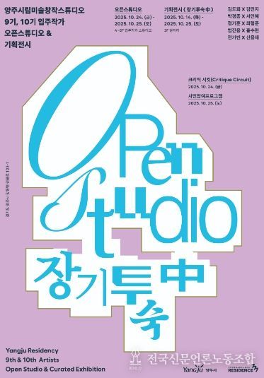 전국신문언론노동조합 기자 | 양주시가 시민들이 예술가의 창작 현장을 직접 체험할 수 있는 ‘오픈스튜디오’를 오는 10월 24일과 25일 양일간 양주시립미술창작스튜디오에서 개최한다.