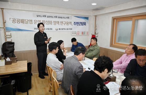 전국신문언론노동조합 강찬희 기자 | 울산 중구의회 의원연구단체인 공공배달앱 운영 활성화 정책 연구회가 지역 상인들의 현장목소리를 듣기 위한 간담회를 마련했다.