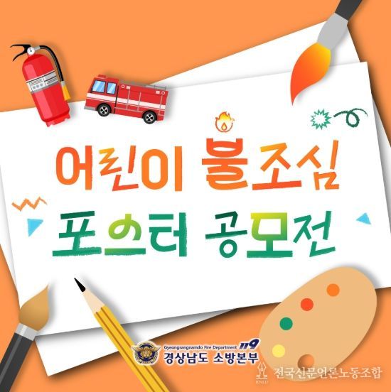 전국신문언론노동조합 강찬희 기자 | 경상남도 소방본부는 제78회 불조심 강조의 달을 맞아 오는 10월 31일까지 도내 어린이를 대상으로 ‘어린이 불조심 포스터 그리기 공모전’을 개최한다고 밝혔다.