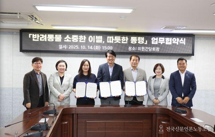 전국신문언론노동조합 강찬희 기자 | 인천 서구는 14일 관내 동물장묘업체와 함께 ‘반려동물 소중한 이별, 따뜻한 동행’을 주제로 반려동물 장례문화 지원 업무협약을 체결했다. 이번 협약은 서구의회 의원연구단체인 서구반려동물정책연구회가 공동발의해 전국 최초로 제정한 ‘인천광역시 서구 반려동물 장례문화 지원 조례’를 근거로 진행됐다는 점에서 의미가 크다.