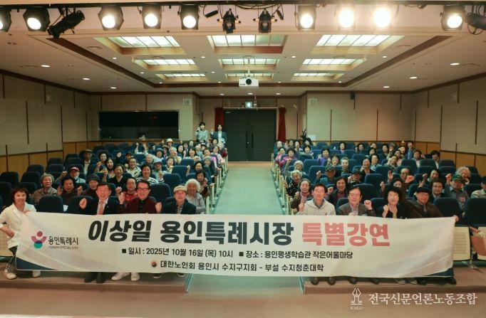 전국신문언론노동조합 기자 | 이상일 용인특레시장은 16일 오전 수지구 큰어울마당에서 대한노인회 용인시 수지구지회가 운영하는 수지청춘노인대학 어르신 100여 명을 대상으로 미술 특강을 했다.