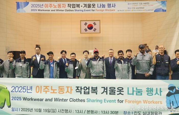전국신문언론노동조합 김성길 기자 | 전라남도는 19일 진도군 실내체육관에서 이주노동자 500여 명을 대상으로 작업복 나눔 행사를 개최했다.