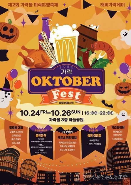 전국신문언론노동조합 강찬희 기자 | 서울시농수산식품공사(사장 문영표)는 오는 10월 24일부터 26일까지 3일간, 가락몰 3층 하늘공원에서 가을 축제 ‘2025 가락 옥토버페스트(Oktober Fest)’를 개최한다고 밝혔다.