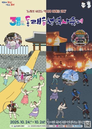 전국신문언론노동조합 이의용 기자 | 부산 동래구는 오는 10월 24일부터 26일까지 3일간 ‘동래성 사람들, 역사와 미래를 잇다’라는 새로운 슬로건으로 ‘제31회 동래읍성역사축제’를 개최한다고 밝혔다. 올해 축제는 동래성 항전 이야기에 4차 산업 기술을 접목해 다양한 체험과 공연으로 가득 채운 새로운 형태의 축제로 진행된다.
